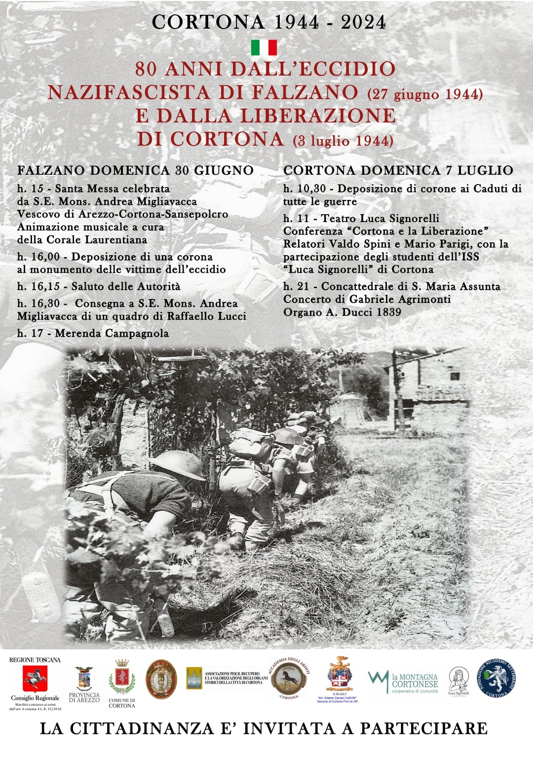 80 anni dall’eccidio nazifascista di Falzano (27 giugno 1944) e dalla Liberazione di Cortona (8 luglio 1944)