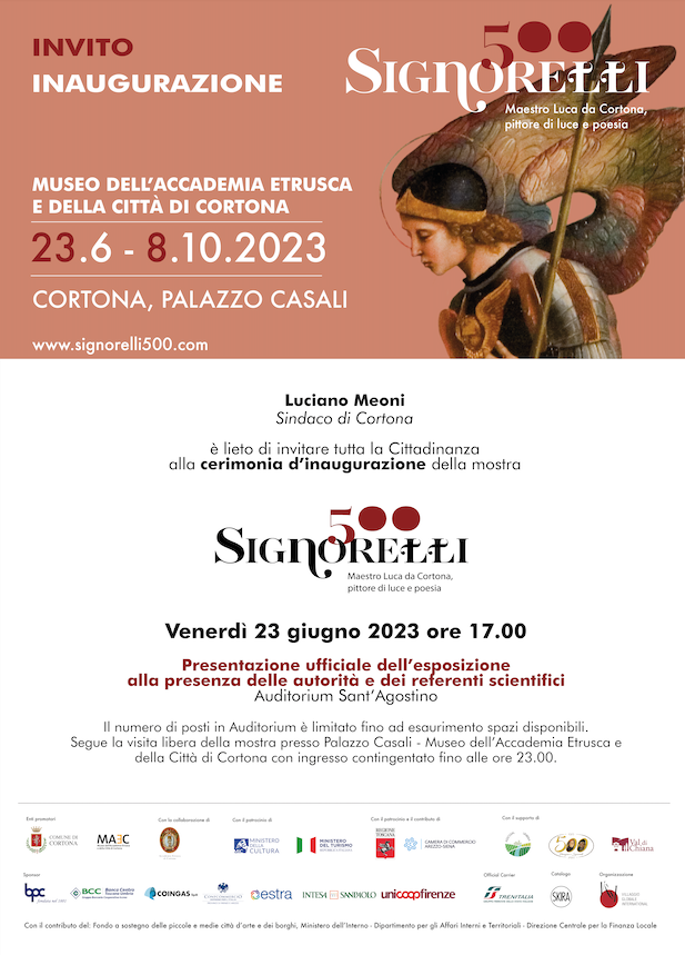 Siete tutti invitati all’ inaugurazione della mostra Signorelli 500, venerdì 23 giugno alle ore 17 presso l’Auditorium Sant’Agostino.