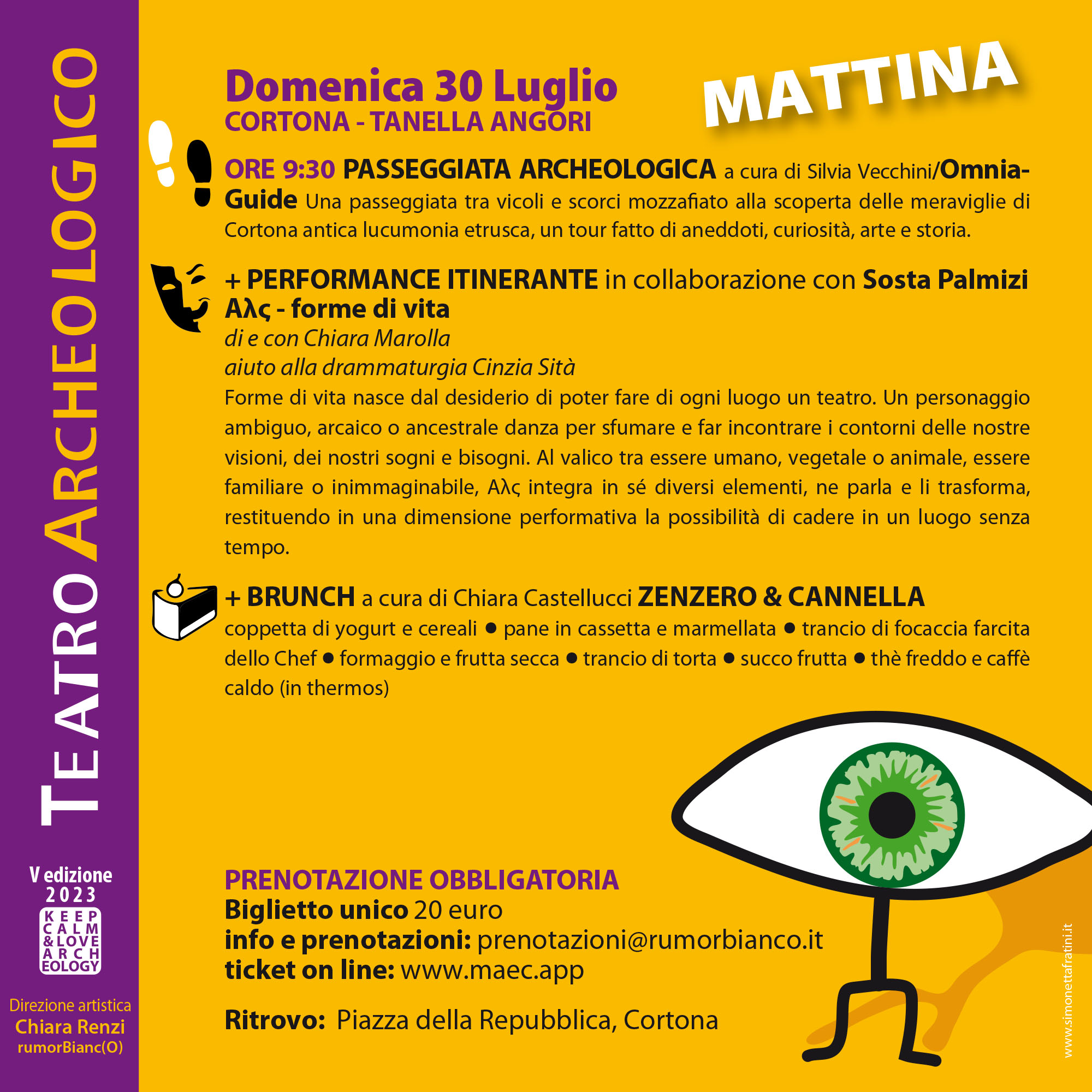 09:30 PASSEGGIATA ARCHEOLOGICA a cura di Silvia Vecchini/Omnia Guide. Una passeggiata tra vicoli e scorci mozzafiato alla scoperta delle meraviglie di Cortona antica lucumonia etrusca, un tour fatto di aneddoti, curiosità, arte e storia.