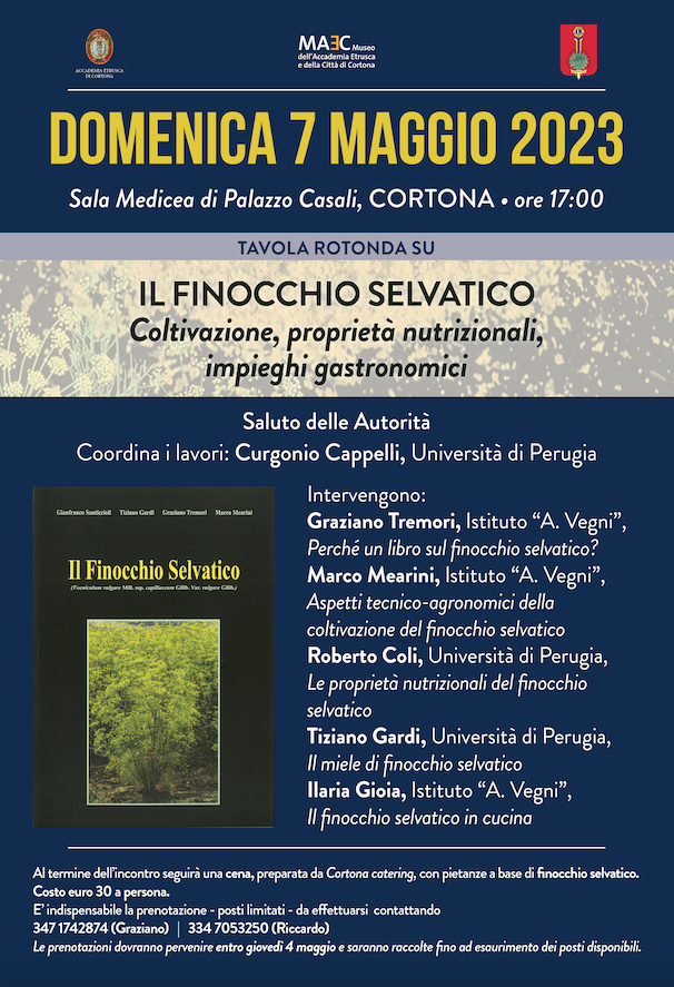 Al termine dell’incontro seguirà una cena, preparata da Cortona catering, con pietanze a base di finocchio selvatico.