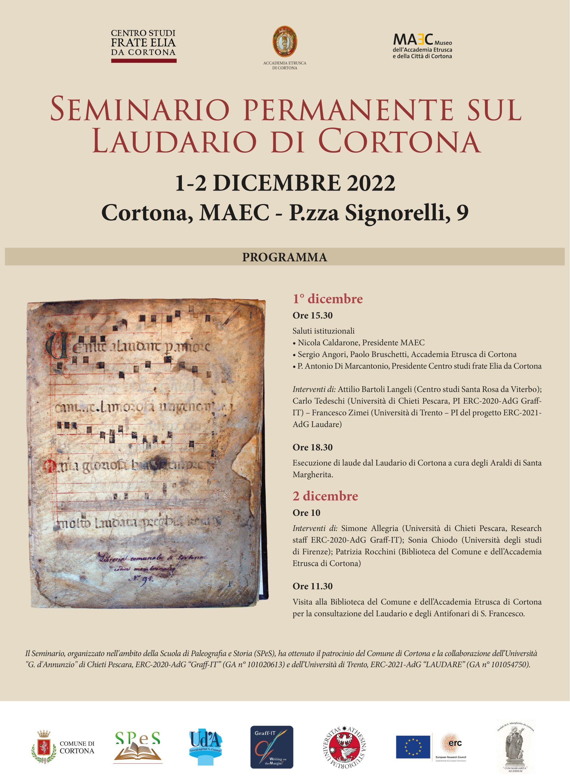Interventi di: Attilio Bartoli Langeli (Centro studi Santa Rosa da Viterbo); Carlo Tedeschi (Università di Chieti Pescara, PI ERC-2020-AdG Graff- IT) – Francesco Zimei (Università di Trento – PI del progetto ERC-2021- AdG Laudare)
